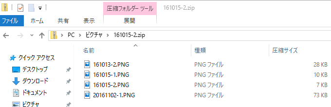 Windows7で作成 - 元のファイルと同じ階層にzipファイルが作成されます。